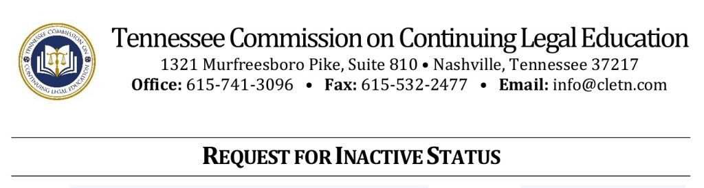 5. I am requesting to be placed on inactive status with the TN Commission on Continuing Legal Education.